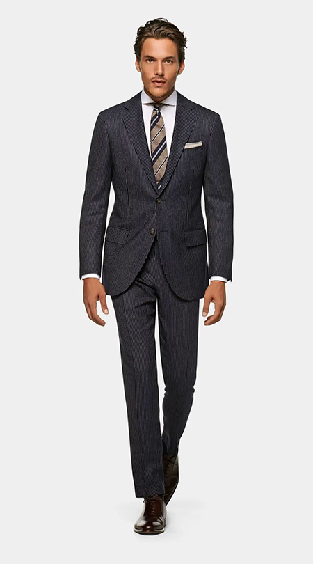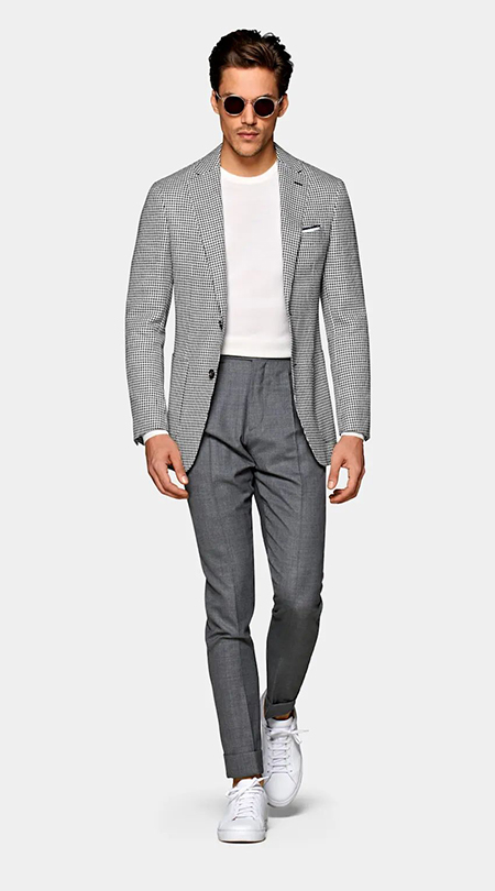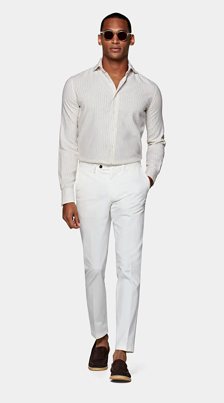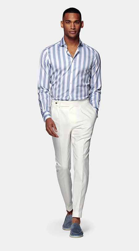 穿條紋西裝時搭配純色西褲