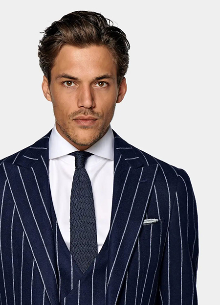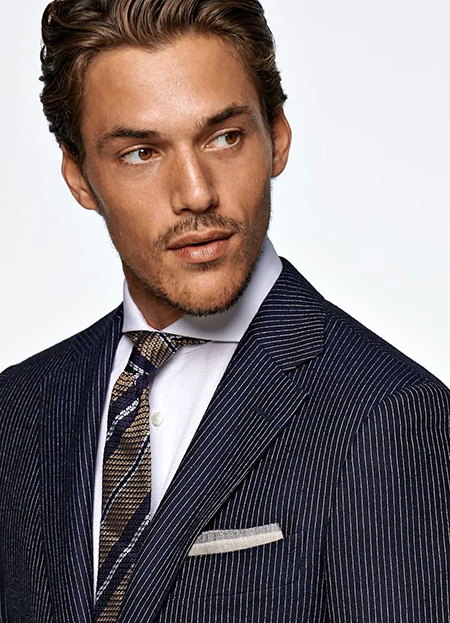 實力派選手,只要給他一個簡單的線條,就能輕松掌控全場。多樣化的風(fēng)格,可選擇粗條紋的濃烈,也可選擇細條紋的低調(diào),隨心掌控。條紋元素,簡簡單單卻能令人印象深刻。在西裝中涂繪上線條,在低調(diào)與張揚中找到平衡,是沉穩(wěn)西裝中最獨特的點睛之筆。
